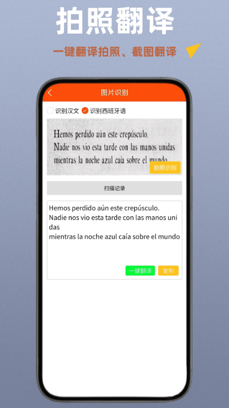 4.选择"图片翻译"功能,选择需要翻译的图片或拍照,应用会自动识别图片中的文字并进行翻译。支持20多种图片格式,识别速度快至0.5秒。