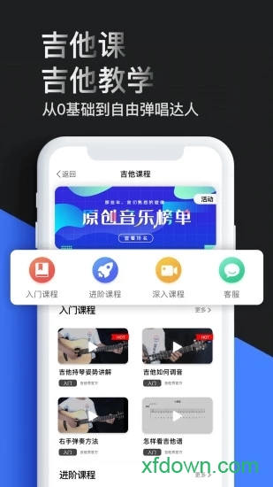 2、零基础友好设计,从持琴姿势到复杂solo循序渐进,配合3D动画演示让学习更直观