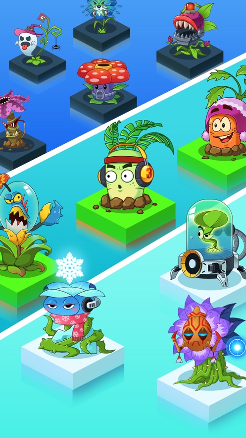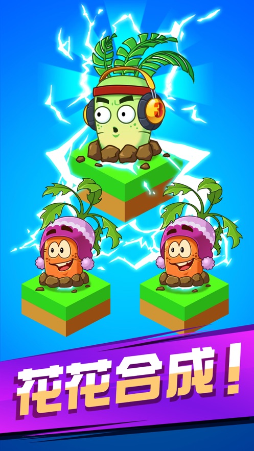 2、简单的放置和点击游戏,合并两个相同的植物并进化到更高的水平,提高你的战斗力;操作简单直观,只需拖拽合并就能完成升级,但需要玩家思考最优的合成策略。