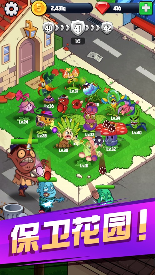 3、击杀入侵僵尸,收获金币,培养升级最强花花;完善的成长系统让玩家能够亲眼见证自己的植物从弱小到强大的全过程。