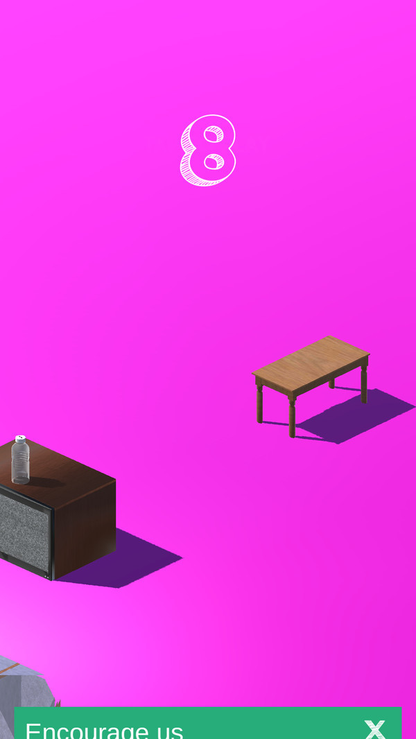 2、你只需要操控你的瓶子从一张桌子上跳到另一张桌子上,并且不掉下去即可哦,按住和松开屏幕的节奏。虽然规则简单,但想要成为高手却需要不断练习。游戏还加入了物理引擎,让瓶子的运动更加真实有趣。