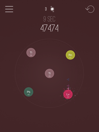 《链式反应》是一款上手简单但极具深度的休闲益智佳作,其精妙的玩法设计能让玩家沉浸数周仍乐此不疲。游戏从最基础的氢原子开始,玩家需要运用有限的空间资源,通过精确计算将两个氢原子融合成氦原子,再将两个氦原子升级为锂原子,以此类推逐步构建元素周期表。终极目标是创造出金、银、铂等珍贵元素。但要注意,原子排列过于密集会导致宇宙坍缩,游戏立即结束。聪明的玩家会通过构建对称原子链来触发大规模连锁反应,这是控制空间的关键技巧。游戏中还会随机出现特殊减号原子,它们既能吸收多余原子维持平衡,也可作为战略道具替换关键位置。看似简单的机制背后隐藏着丰富的策略维度,想要冲击高分必须精心规划每个原子的落位。通过合成特定元素还能解锁九种幸运护身符,这些特殊能力将彻底改变游戏策略,为每次挑战带来全新体验。