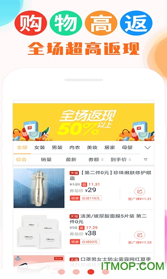 2.商城返利:覆盖千余家知名品牌,包括服装、美妆、母婴、居家、食品、鞋包、数码电器等全品类商品,购物即享返利。