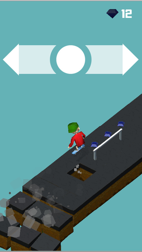 这是一款滑板跑酷类手游。在TheBestSkateboarder安卓版中玩家要脚踩着脚下的滑板不断快速地前进,后面的道路在坍塌,如果减慢速度就会掉下去!收集宝石,可以解锁更多酷炫的滑板和人物皮肤。你是世界上最好的滑板运动员吗?让我们来见识一下吧!