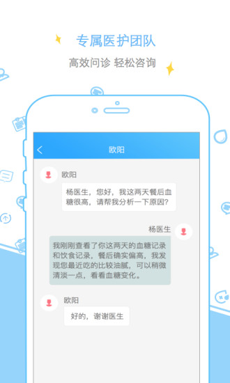 甜蜜管家与院内血糖管理系统无缝连接,用户只需输入邀请码即可绑定日常问诊的医护团队。通过这一功能,用户可以随时在线咨询医生,获取专业的医疗建议和治疗方案。无论是用药指导、饮食建议还是运动计划,医护团队都能提供个性化的服务,让用户足不出户就能享受到贴心的医疗服务,大大提升了就医的便捷性和效率。