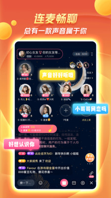 【互动交友】:聊天房多种互动玩法嗨聊停不下来,趣味游戏和互动功能让社交更有趣,结识更多新朋友。