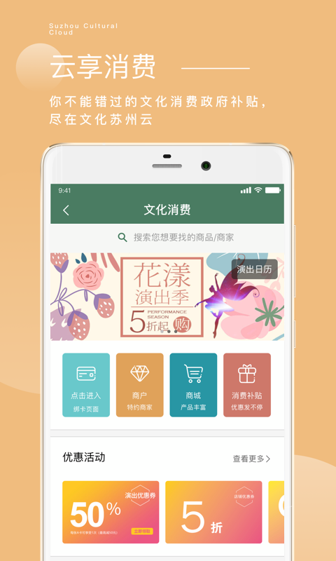 5、文化消费:在线购买书籍、电影票、演出票、产品等文化类商品,享受政府补贴。平台与苏州各大文化商家合作,提供专属优惠,并支持多种支付方式。