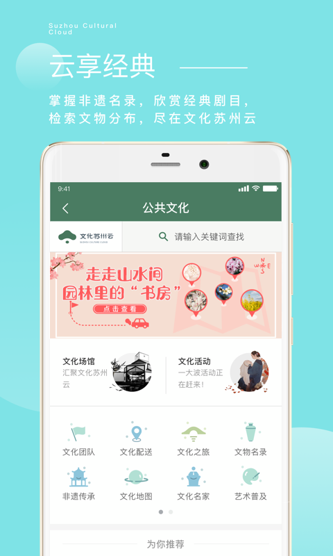3、文化场馆:苏州各类特色文化场馆的位置、规模、布局、设施一目了然。通过"文化地图",轻松找到你想去的场馆。每个场馆都配有详细介绍、实景图片和用户评价,帮助用户做出最佳选择。