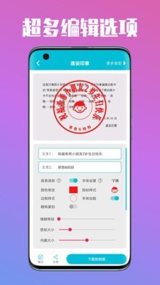 *就如同手中拥有了印章的编辑器,让你可以任意的进行字体的调节,边距的调节。内置上百种中英文字体,支持自定义导入字体文件。高级编辑功能包括文字旋转、弧形排列等专业选项,满足各种创意需求。