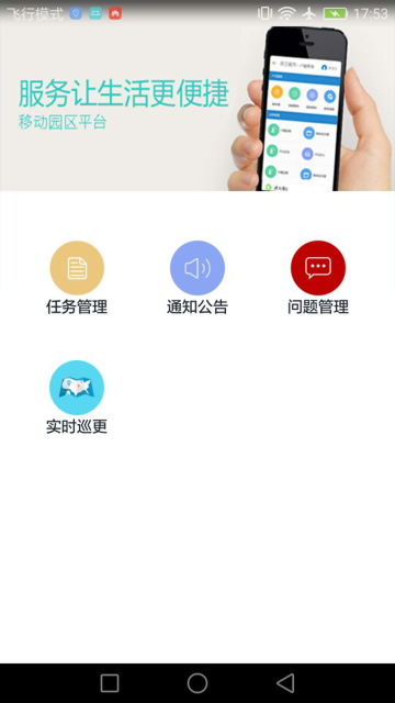 作为一款专为园区管理打造的移动智能软件,园区卫士致力于为管理人员提供便捷高效的工作支持。通过任务管理模块,领导可以轻松下发任务并跟踪执行进度,确保工作有序开展。通知公告功能让重要信息实时传达,避免遗漏。问题管理模块支持工作人员快速上报问题,并接收领导的反馈与处理意见。实时巡更功能则帮助安保人员精准记录巡更路线,提升园区安全水平。无论是日常管理还是应急响应,园区卫士都能提供全方位的解决方案。
