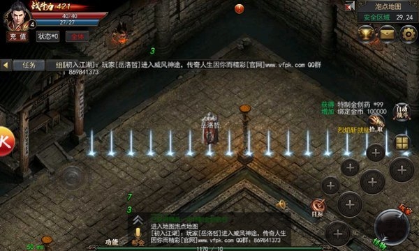 6、支持千人同屏在线激战,华丽的技能特效可以自由组合连击,配合震撼的音效表现,为玩家带来极致的战斗乐趣。