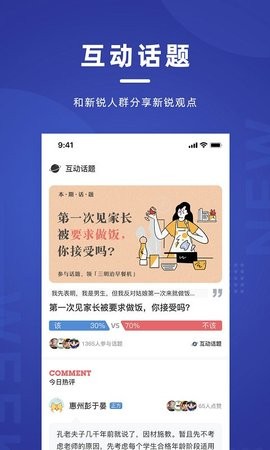 3、互动社区:新周刊app提供互动社区功能,用户可以在这里分享自己的观点和想法,与其他读者互动交流。用户可以在社区中参与到不同的话题讨论中,分享自己的见解和看法。社区采用智能推荐机制,会自动匹配与您兴趣相投的讨论组,让思想交流更加高效。