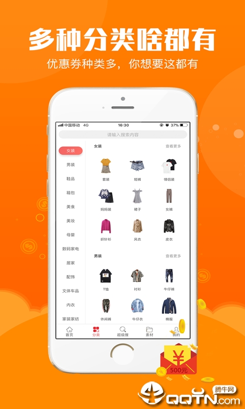 积朵APP的商品分类细致全面,包含女装、男装、居家日用、鞋品、数码家电等12个大类。每个大类下又细分多个子类目,如女装包含连衣裙、T恤、外套等;数码家电包含手机、电脑、小家电等。平台特别注重母婴用品和家装家纺类目的品质把控,与众多知名品牌达成直供合作。户外运动爱好者也能在这里找到专业的装备和服饰,满足不同人群的多样化购物需求。