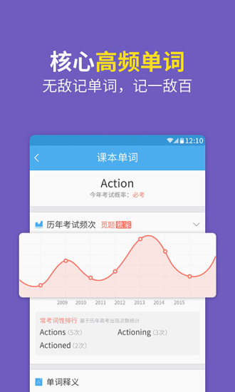 4、核心高频英语单词:运用自然语言处理技术,从近十年真题中提取2578个高频词汇。开发"词频记忆卡"和"语境填空"两种模式,配套英美原声发音和真题例句。