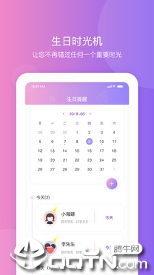 1生日提醒:记录您每一位亲人、爱人、挚友的生日,准确为您提供时间提醒,让您不再错过任何一个送上祝福的重要时刻;同时支持设置提前提醒天数,给您充足的准备时间。