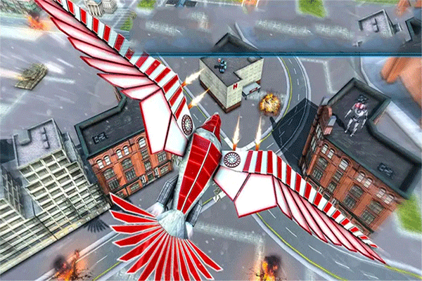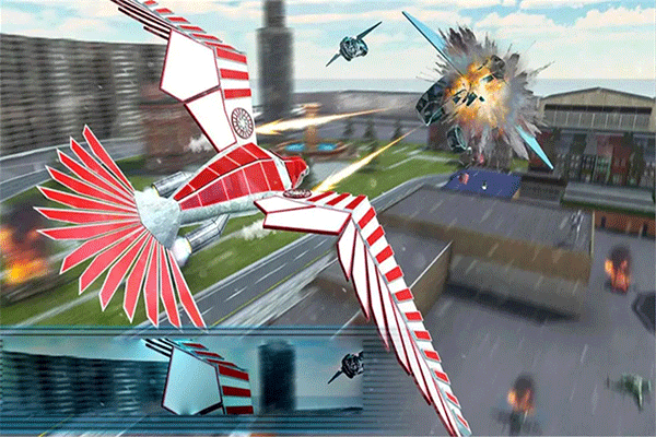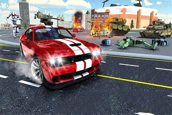 4、游戏最具特色的变形系统允许玩家随时点击右侧的汽车图标,瞬间切换为陆地作战形态。不同形态拥有专属的攻击方式和移动特性,需要玩家根据战况灵活运用。