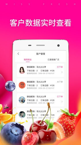 3.实时数据同步功能,全面打通App、小程序、微商城数据,推广结果即刻呈现,帮助推广员随时调整策略。