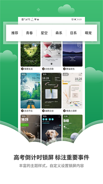 软件拥有专业设计团队打造的海量高考主题壁纸库。所有壁纸都融入励志元素和高考主题,既美观又实用。支持根据个人喜好选择不同风格:简约、卡通、文艺等。定期更新节日限定款和名校主题壁纸,保持新鲜感。用户还可以上传自己的照片,制作专属励志壁纸。