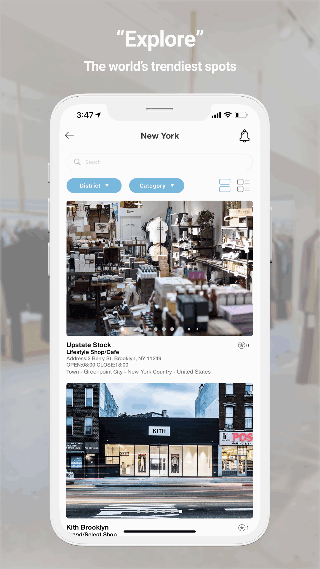 2、智能地图:基于LBS技术精准定位,实时发现周围的热门时尚店铺和网红打卡点,不错过任何潮流热点。
