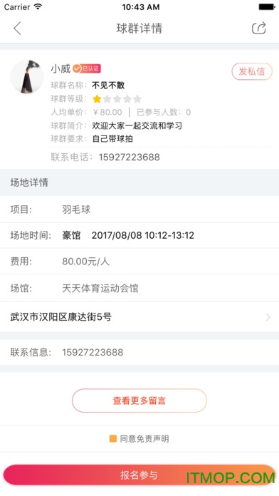 找球馆APP的球群功能让组织活动变得异常简单。您可以轻松创建球群、寻找志同道合的球友、管理活动费用和沟通细节。所有群主都经过严格认证,确保活动质量。系统还设置了完善的报名机制,参与者需提前缴费,活动前6小时可申请退款,既保障了群主的权益,也避免了临时放鸽子的情况。