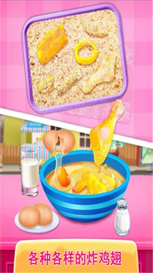 4、真实的烹饪模拟,玩家需要精确控制面粉裹浆厚度和调料比例,才能做出完美的炸鸡翅。