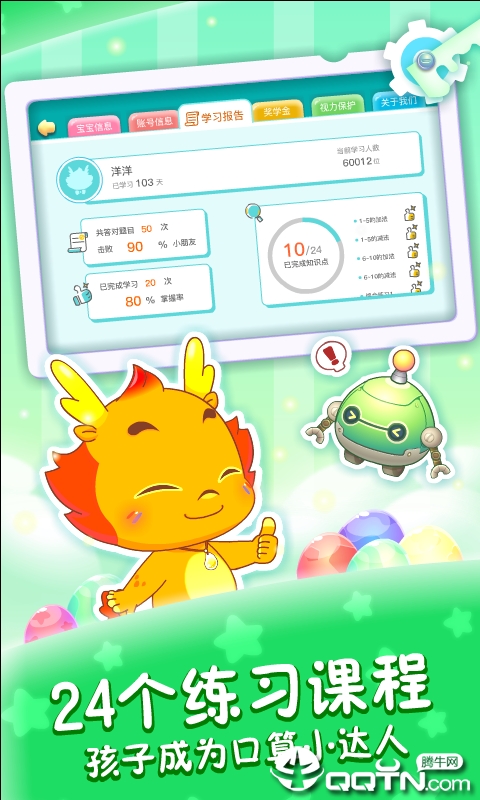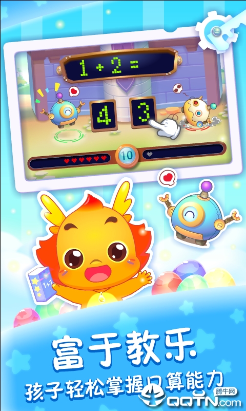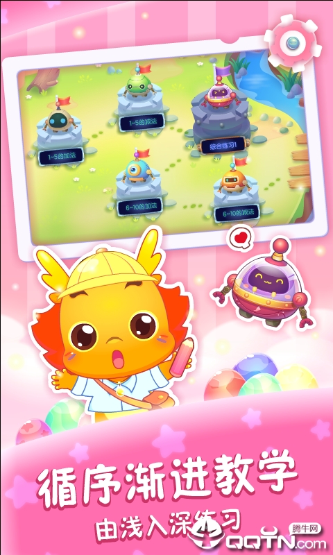 【小伴龙学口算】是由知名儿童教育品牌"小伴龙"官方推出的数学启蒙应用,专为4~7岁学龄前儿童精心打造。这款app创新性地将数学学习融入冒险故事中,孩子们可以跟随可爱的机器人伙伴,在充满童趣的数学王国里展开奇妙旅程。通过精心设计的关卡挑战,从最简单的10以内加减法开始,逐步过渡到两位数运算、进退位计算等更复杂的题型,帮助孩子建立扎实的数学基础。在轻松愉快的游戏氛围中,不仅能培养孩子的计算能力,还能锻炼思维敏捷性和专注力,为未来的小学学习打下良好基础。