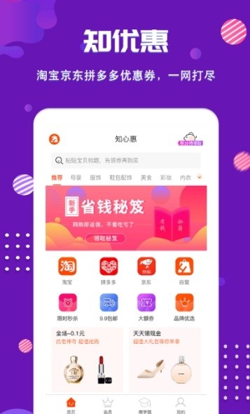 "知心惠"软件是追求性价比的网购用户的最佳选择,完美融合了手机购物的便捷与超值优惠。相比实体店因人工和租金导致的高价,知心惠APP能为您提供更优惠的价格。平台操作简单,一键即可查找各类优惠券,让您轻松享受购物优惠。无论是日常购物还是寻找特价商品,知心惠都能满足您的需求,是值得信赖的省钱购物助手。