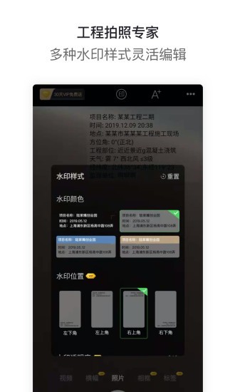 2.操作简单高效:打开即拍,秒生成带信息照片,不用再手动编辑,节省大量时间。实测比传统方式快3倍以上,特别适合抢工期的项目。