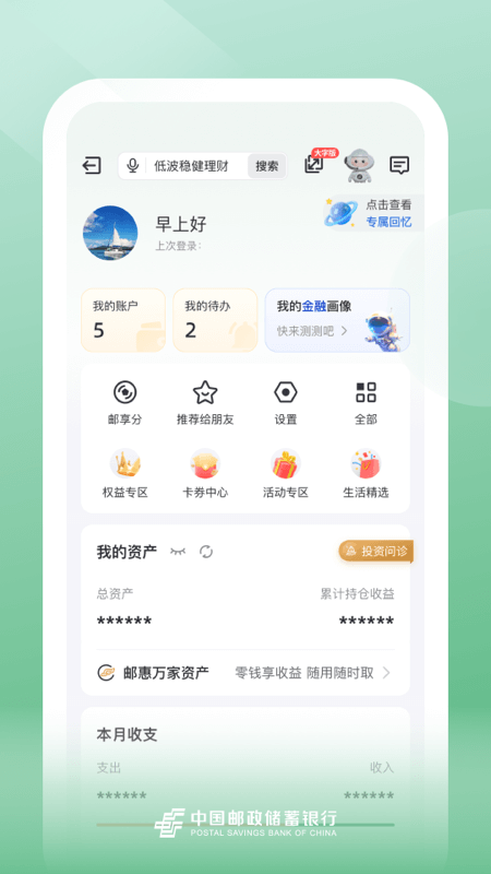 邮政银行app是中国邮政储蓄银行倾力打造的智能金融服务平台,为用户提供全方位的移动金融解决方案。这款官方手机银行客户端集账户管理、资金流转、信贷服务、投资理财等核心功能于一体,采用先进的金融科技保障交易安全,让用户随时随地享受便捷高效的银行服务。无论是日常消费支付还是大额资金管理,邮政银行app都能满足不同用户的金融需求,真正实现"指尖上的银行"服务体验。