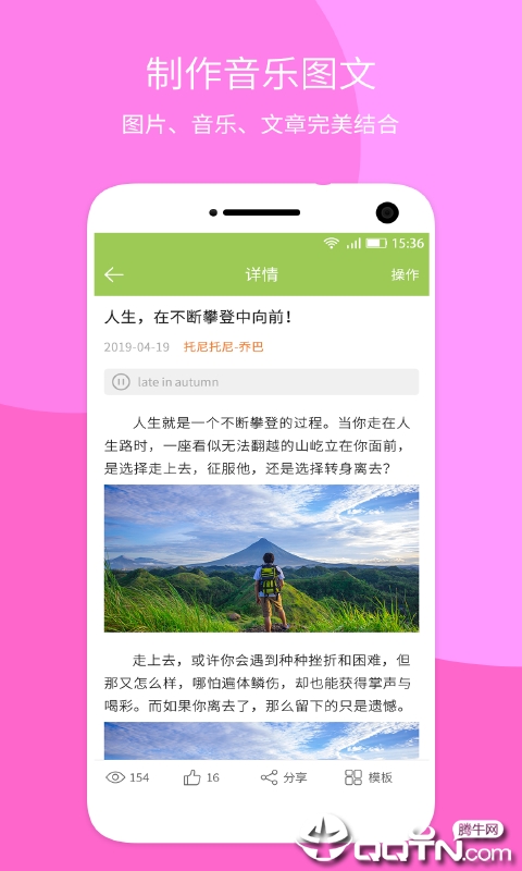 1,一键套用,三步轻松制作精美音乐相册。软件采用智能化模板匹配技术,自动优化照片布局和转场效果,即使是初次使用的用户也能在几分钟内完成专业级的作品。