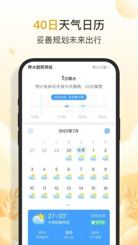 5、【15天天气预报】未来15天天气、风向、温度、空气质量预报;帮助用户提前规划中长期行程安排。