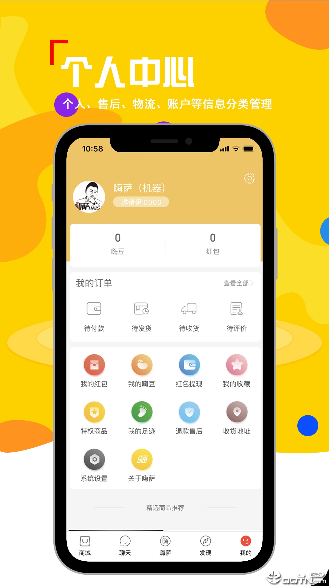 1、嗨萨商城是一个开放型大众创业平台,人人可免费使用,零门槛开启创业梦想;
