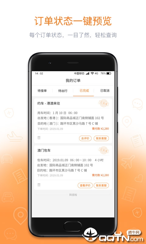 •订单状态:可视化订单追踪系统,从接单到完成全程可查。新增行程异常报警功能,遇到路线偏离等特殊情况自动触发安全机制。