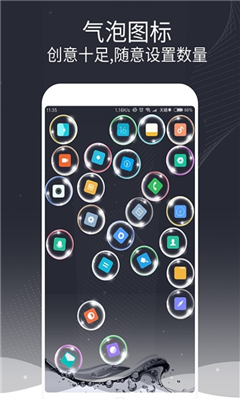 1、泡泡图标:将普通图标变成漂浮的泡泡效果,轻轻触碰就会产生互动反应,带来有趣的视觉体验。