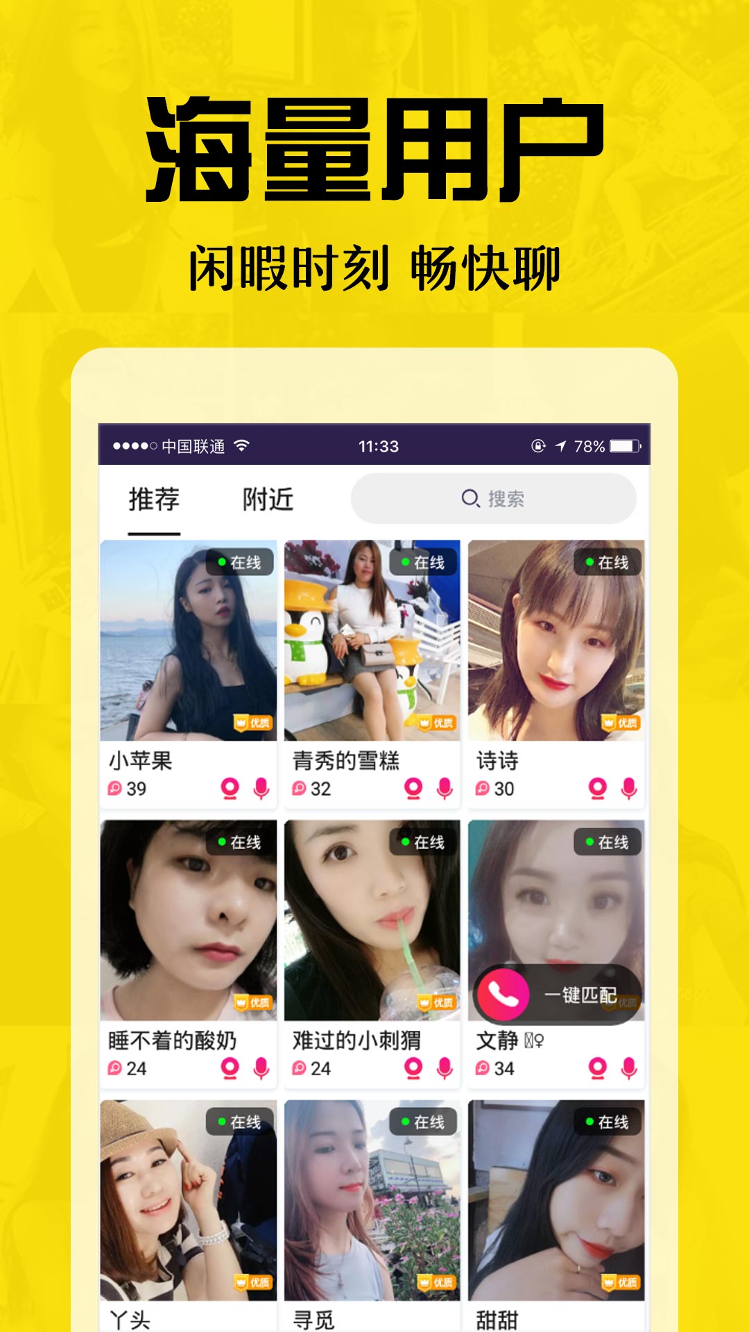 【快速交友】一键智能匹配功能,3秒即可找到合适聊天对象。平台提供丰富的破冰话题和互动小游戏,帮助用户快速打破陌生感,开启愉快对话。