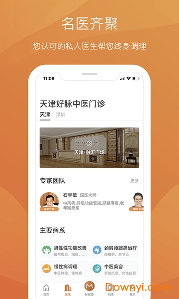 名医齐聚,您认可的私入医生帮您终身调理。平台汇聚了全国知名中医专家,包括多位国医大师和省级名中医。用户可以根据自身需求选择心仪的医生建立长期服务关系,享受持续的健康管理和疾病预防服务。