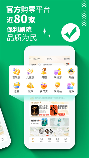 保利文化旗下专业演出购票平台,坐拥全国近80家保利剧院资源,网罗话剧、音乐剧、舞剧、儿童剧、音乐会、演唱会、展览等各类优质票源,一触即享在线选座、现场取票服务;与各大演出机构建立直连合作,确保票源真实可靠,杜绝黄牛票风险。
