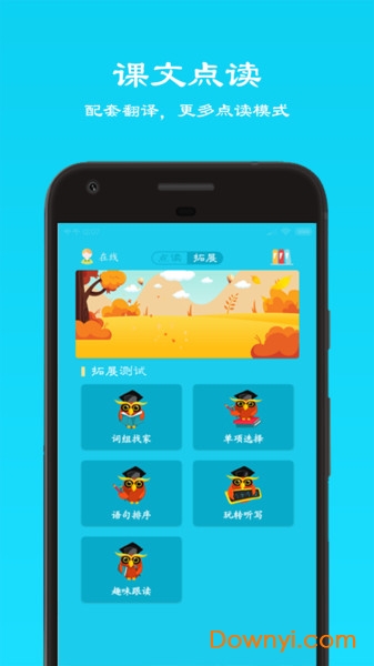 【3】多种同步拓展测试,提供完善的课后配套测试功能。包括单词听写、句型练习、阅读理解等多种题型,全面检测学习效果。