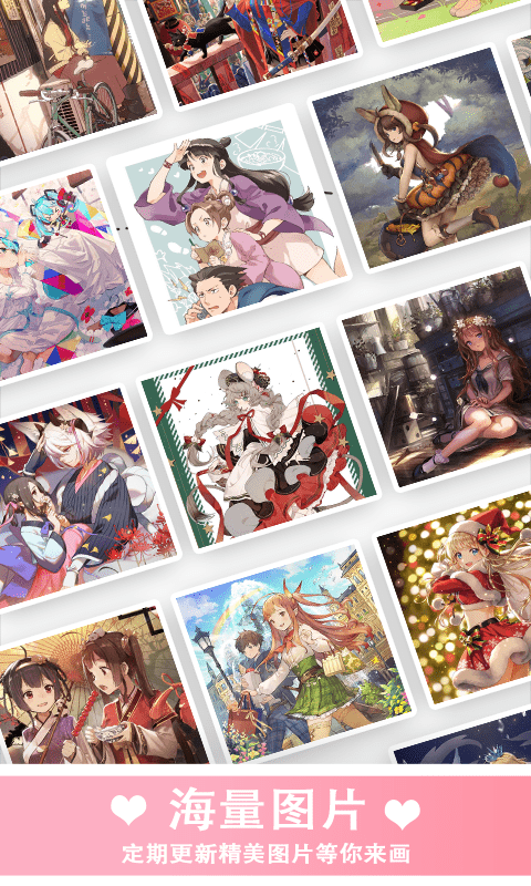 游戏内置超过1000幅专业绘制的线稿,涵盖20多个主题分类,每日更新确保内容新鲜度。从呆萌的宠物插画到恢弘的城市景观,从复古的装饰图案到流行的动漫角色,总有一款能激发您的创作灵感。特别推出的季节限定图库会随节假日更新,比如圣诞节的麋鹿主题、春节的祥瑞图案等。所有线稿都经过美术团队精心调整,确保轮廓清晰、细节丰富,既适合快速填色也支持精细创作。部分特殊图稿还带有动态效果,填色完成后能看到花瓣飘落、星光闪烁等惊喜画面。