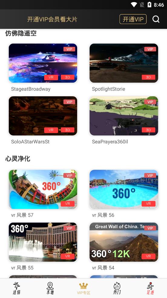 【内容种类全】我们深耕VR领域多年,不断拓展视频内容的广度和深度。从自然风光到城市街景,从艺术展览到体育赛事,我们致力于为您打造最全面的VR视频库,让您通过VR眼镜就能看到更大的世界。
