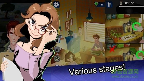 1、游戏融合了传统找不同玩法和创新解谜元素,每个关卡都像是一个待解的案件,玩家需要通过观察细节来"破案"。游戏场景丰富多样,从日常家居到神秘古堡,每个场景都暗藏独特的线索和故事背景。