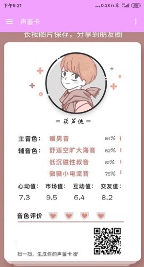 声鉴卡软件最大的特色在于其创新的互动评分系统。用户不仅可以分析自己的声音,还能为好友的声音进行趣味打分,系统会从心动值、市场值、互动值、交友值等多个维度给出专业评价。每种声音类型都会获得独特的评语,确保每次体验都有新鲜感。最新上线的音色评价系统采用AI技术,能精准识别声音特质并给出专业建议。软件还定期更新声音数据库,确保评价标准与时俱进。这些丰富的玩法让声音鉴定不再单调,每次使用都能发现新的乐趣。