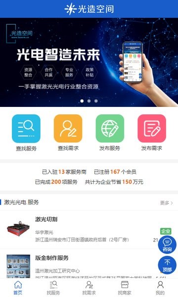 光造空间手机版是一款专为企业用户打造的激光加工服务对接平台。该软件以清新简约的界面设计和便捷高效的操作体验为核心,帮助用户快速实现需求发布、服务商查找、在线沟通等功能。通过整合温州及浙江省优质激光加工资源,平台打破了地域限制,让企业能够轻松找到合适的合作伙伴,提升供应链响应效率。无论是查找光电制造商、发布加工需求,还是获取行业资讯,都能一站式完成。