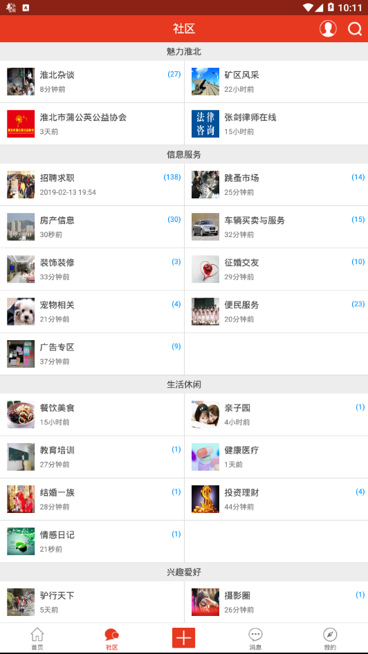 魅力淮北板块包含淮北杂谈、矿区风采等特色栏目,更有公益协会和法律咨询等实用内容。信息服务板块涵盖招聘求职、房产交易等10余个垂直领域,满足不同用户需求。生活休闲区汇集餐饮美食、健康医疗等生活资讯,而兴趣爱好区则聚集了摄影、文学等各类兴趣社群。每个板块都经过精心设计,确保用户能快速找到志同道合的伙伴,分享生活点滴。