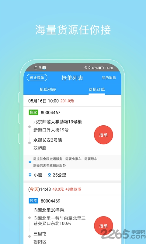 2.平台提供无忧搬家服务,全程价格透明、服务规范,让用户享受快乐、智慧、环保的货运体验。