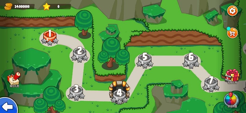 2、关卡选择界面采用直观的地图式设计,1-6号关卡以数字标记在蜿蜒的小路上。当前可玩关卡会被醒目的红框特别标注,玩家只需点击对应数字就能进入心仪的关卡。随着游戏进度推进,更多精彩关卡将逐步解锁。
