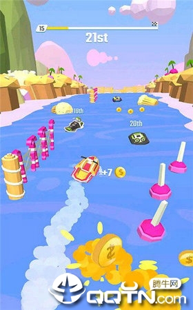 1、精心设计的动态赛道充满挑战,玩家需要灵活避开漂浮的障碍物和突如其来的海浪,保持最佳行驶路线;