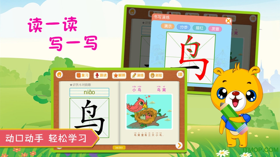 (2)汉字、拼音均配有精美图片,不仅使语文学习生动有趣,还强化教材知识点记忆。图片库包含1000+张原创插画,每张图片都经过教育专家审核,确保准确传达汉字含义。