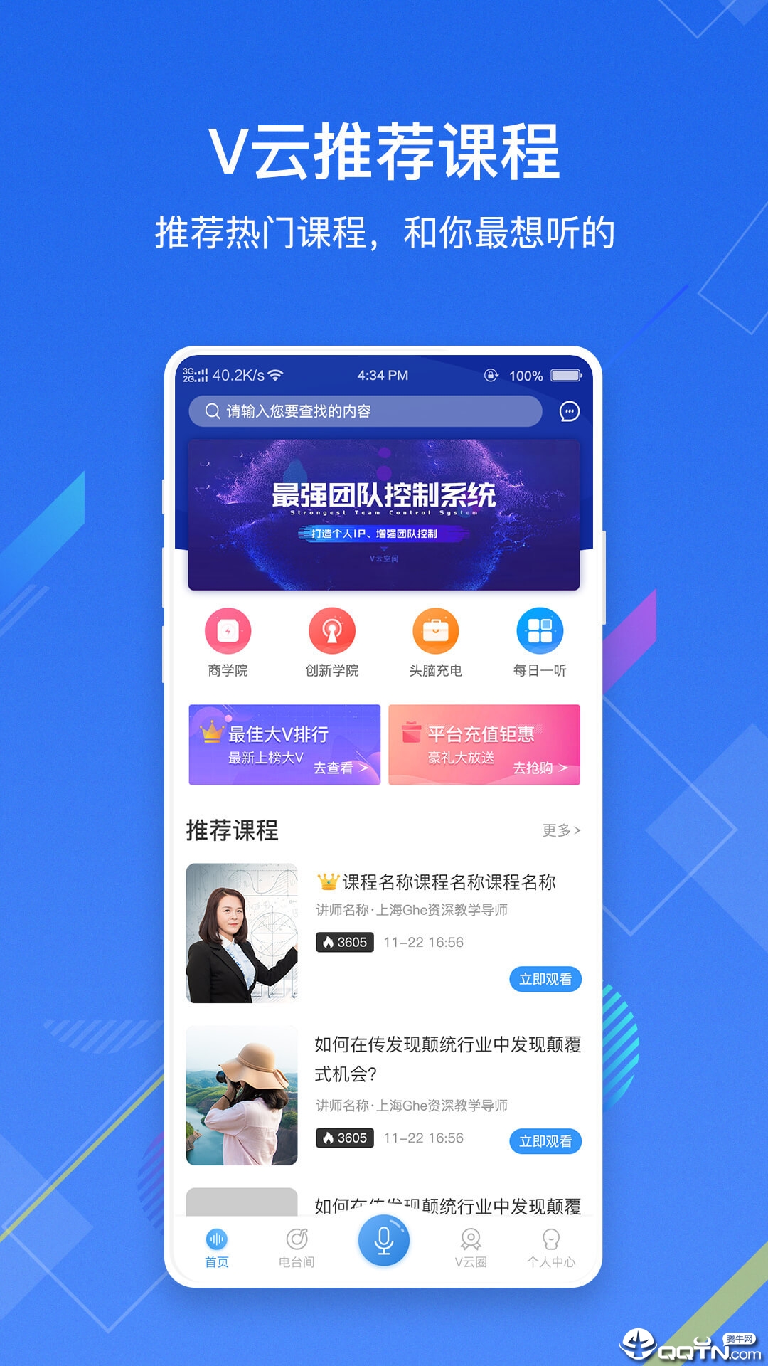 V云空间是一款集在线学习、社交互动与创新生活于一体的综合性平台,致力于为用户打造沉浸式的互联网学习体验。作为一所没有围墙的虚拟学院,它汇聚了海量优质课程资源,涵盖编程、设计、商业等多个创新领域。平台不仅支持高清视频课程观看,还提供实时直播互动、团队协作交流、即时好友聊天等丰富功能,让学习突破时空限制。通过智能推荐系统,V云空间能精准匹配用户学习需求,同时创新的社交功能让知识分享变得更加生动有趣。