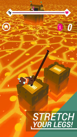合理利用你那可长可短的腿,越过一层层的障碍去见到她。游戏的核心玩法是控制角色伸缩腿的长度,通过精确计算完成跳跃。每次成功跨越都会获得分数奖励。